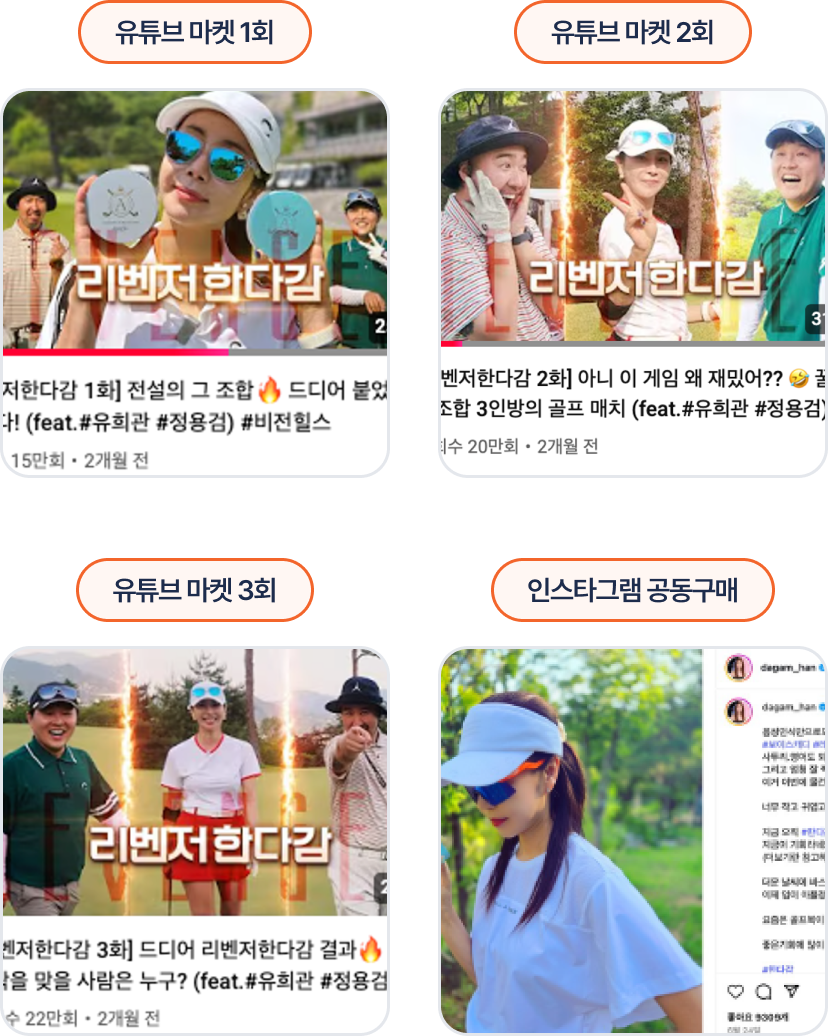 | 인플루언서 | 한다감의 한다감 (유튜브 12.3만 명, 인스타그램 19.1만 명) | ![]() |